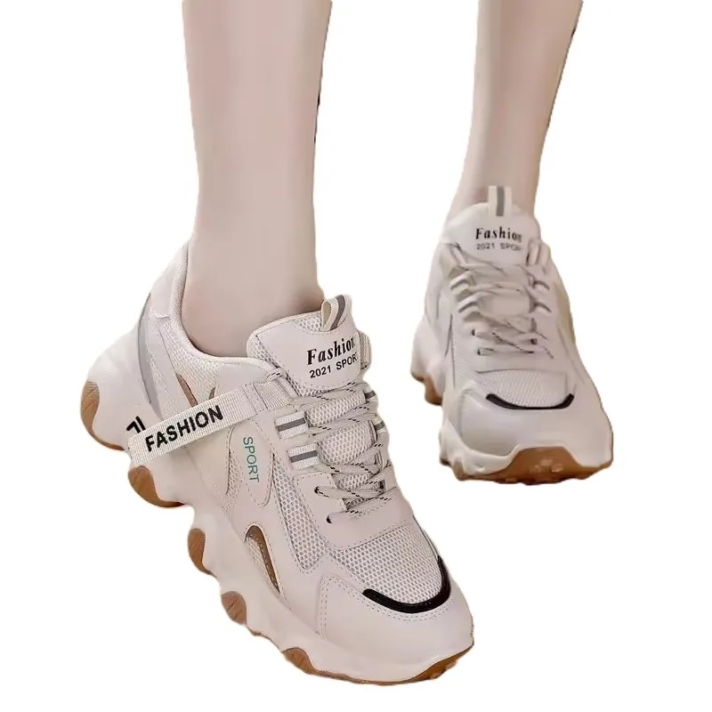 Women's Versatile Breathable Mesh Chunky Sneakers for Spring Autumn Casual Sports Style Lace-Up Closure Soft Walking Style Shoes
